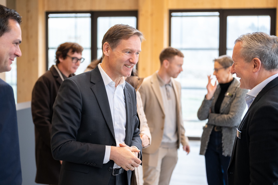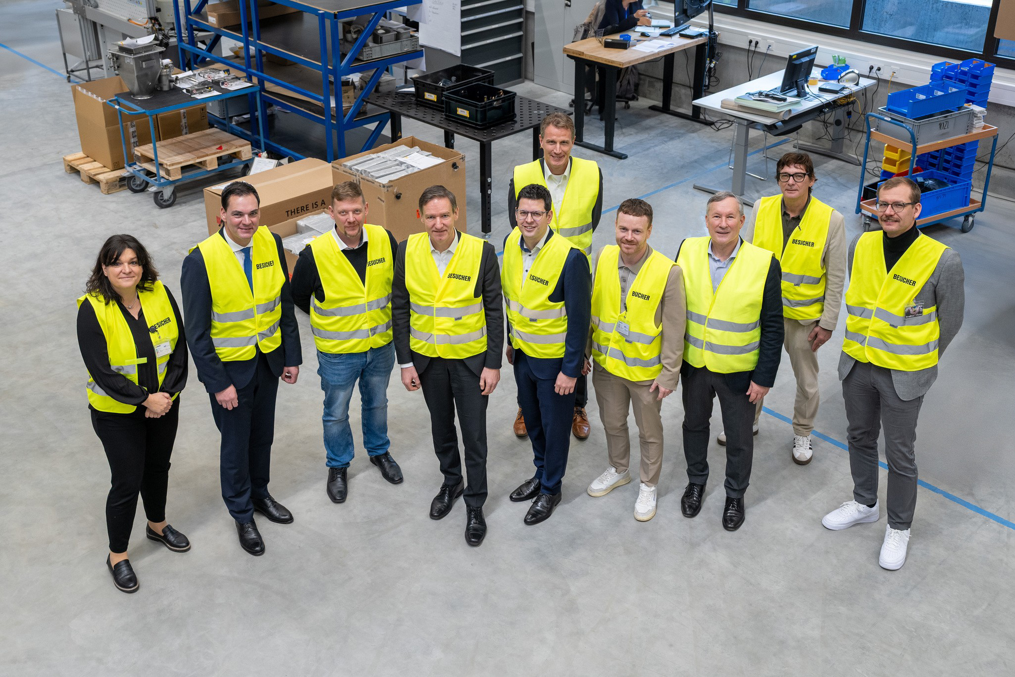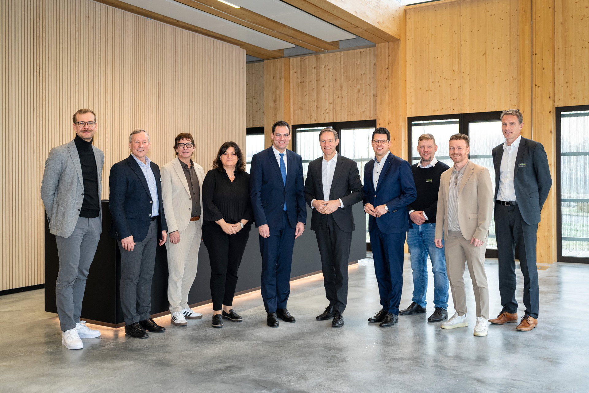 Beim anschließenden Rundgang unter der Leitung von COO Benedikt Broghammer erhielt die Delegation Einblicke in das rund 12.500 Quadratmeter große Werk – von den Büroflächen über das Lager bis hin zur Fertigung. Die neue Produktions- und Logistikhalle steht dabei exemplarisch für Energieeffizienz und Nachhaltigkeit. Josef Moser, Head of Infrastructure, erläuterte, wie Photovoltaik, Geothermie, Wasserrückgewinnung und eine intelligente Fassadentechnologie das Gebäude zu einem Vorzeigeprojekt für zukunftsorientiertes Bauen in der Region machen.