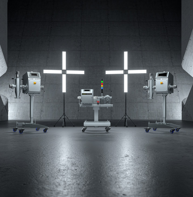The LIQUISCAN VF+ pipeline metal separator is designed for monitoring viscous masses, such as sausage meat. When metal is detected, the filling process is either stopped or the contaminated mass is automatically diverted into a container using a separation system. Various threaded adapters allow for connection to standard vacuum fillers.