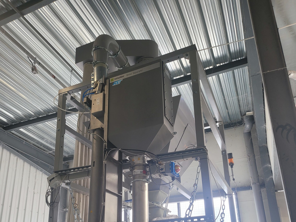 Después del ventilador de extracción, se instaló un separador de metales Sesotec tipo GF en la tubería para separar incluso las partículas metálicas más pequeñas antes de que el material se envase en BigBags.