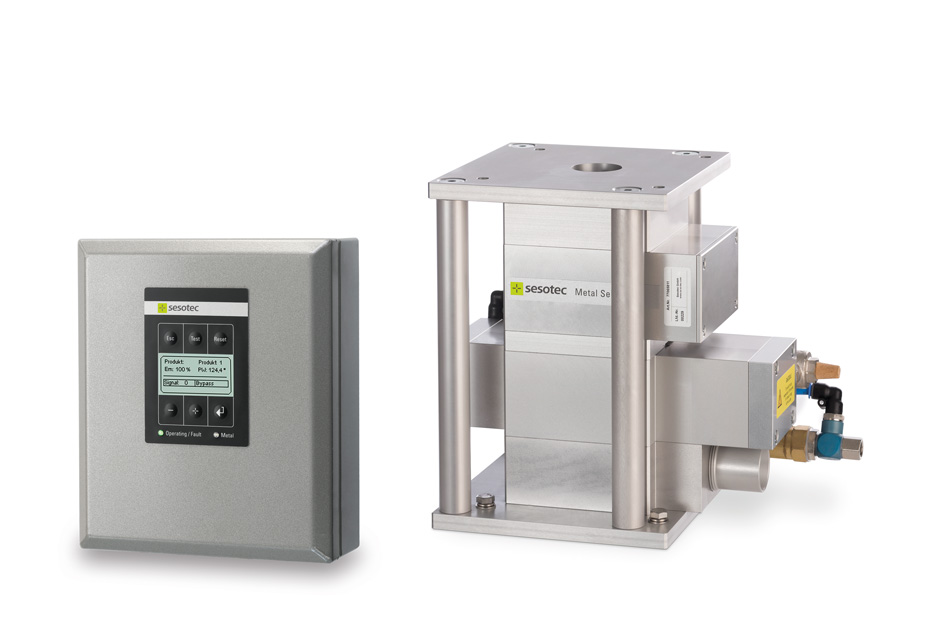 For more than five years Aptar therefore has been using Sesotec metal separators of the PROTECTOR type for the protection of its processing machines. These metal separators are installed directly above the material inlet of injection-moulding machines. They detect all magnetic and non-magnetic metal contaminants (steel, stainless steel, aluminium, …) even if such contaminants are enclosed in the product. Metal particles are removed by means of a "Quick Valve" reject unit. The PROTECTOR metal separators are perfectly adapted to Aptar's requirements.